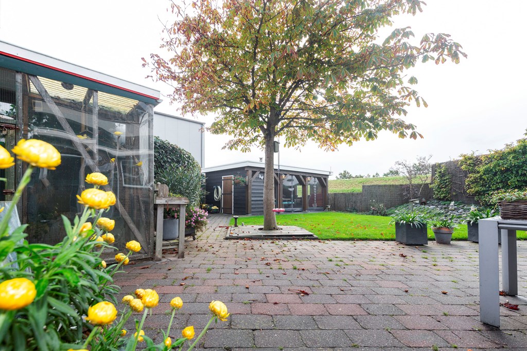 Deze woning beschikt over een riante tuin, afwisselend met gras en tegelwerk, die direct te bereiken is vanuit de woonkamer. De ramen zijn voorzien van rolluiken en elektrische terrasschermen, wat zorgt voor extra privacy en comfort. In de tuin bevindt zich een afgesloten overkapping, voorzien van een houtkachel, waar u zowel in de wintermaanden als tijdens de zomerperiode heerlijk van kunt genieten. De ligging aan de rand van het industrieterrein biedt niet alleen rust en privacy, maar ook het gemak van snelle toegang tot diverse zakelijke faciliteiten. Er is voldoende parkeergelegenheid op eigen terrein, naast en dichtbij de woning, wat het voor u en uw bezoekers gemakkelijk maakt. Bovendien is Ouddorp de ideale uitvalsbasis; u geniet van de rust en charme van het dorp, waarbij u binnen enkele minuten in het dorpscentrum bent, terwijl grotere steden, waaronder Rotterdam, ook gemakkelijk bereikbaar zijn.